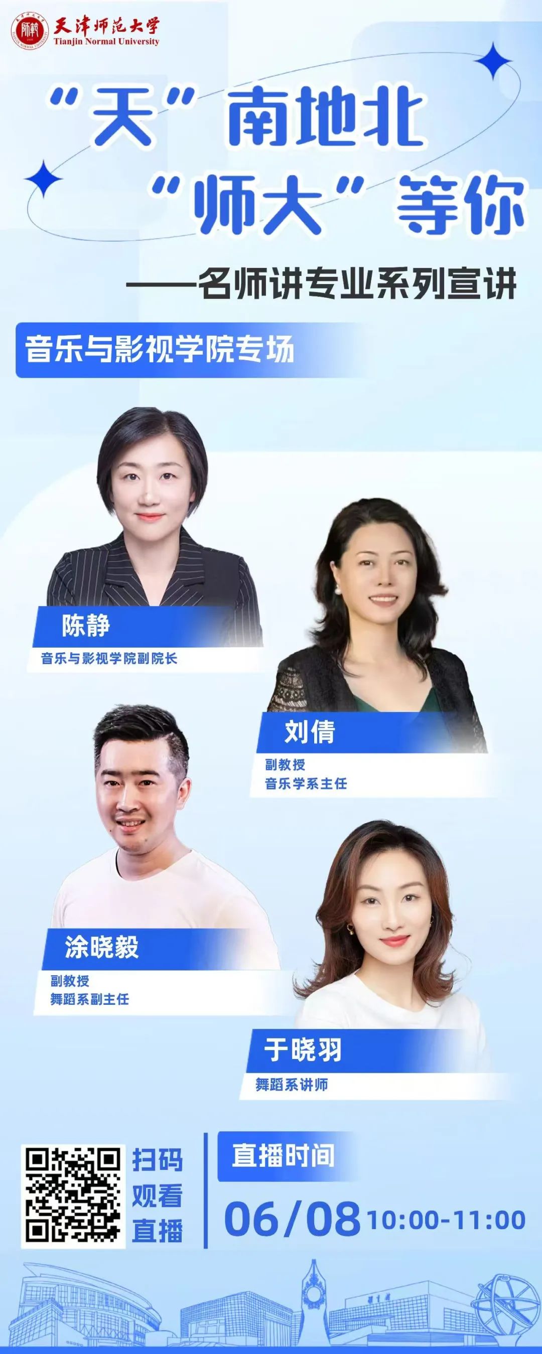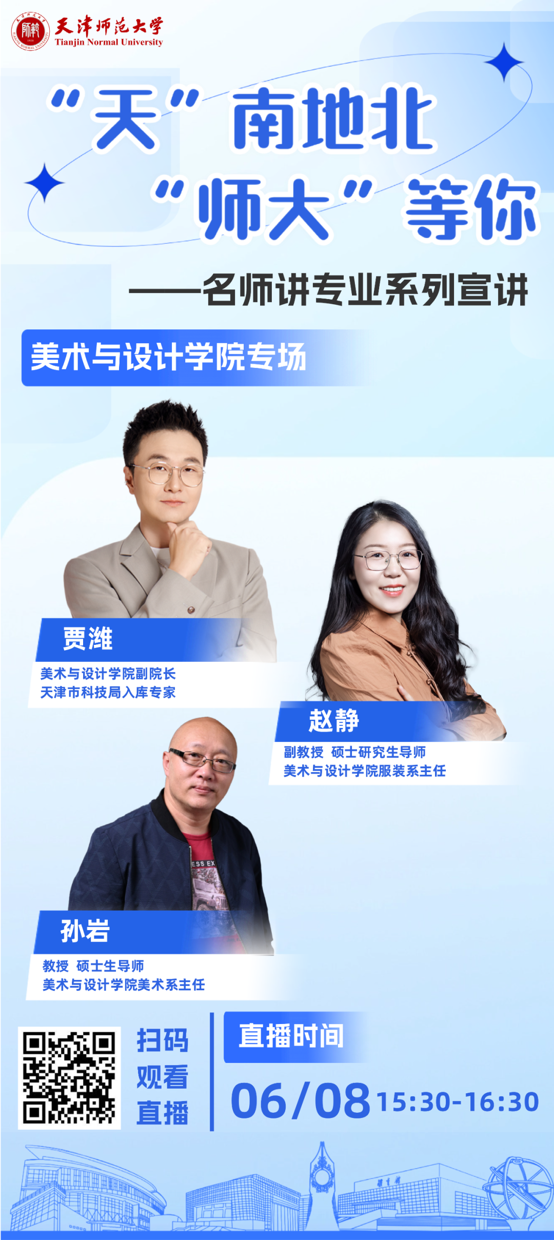 6月2日-6月12日,我们邀请到了各学院(部)相关负责人及各专业名师深度讲解学科专业特色和学科优势等内容,帮助您更好地了解天津师范大学各个学科专业。