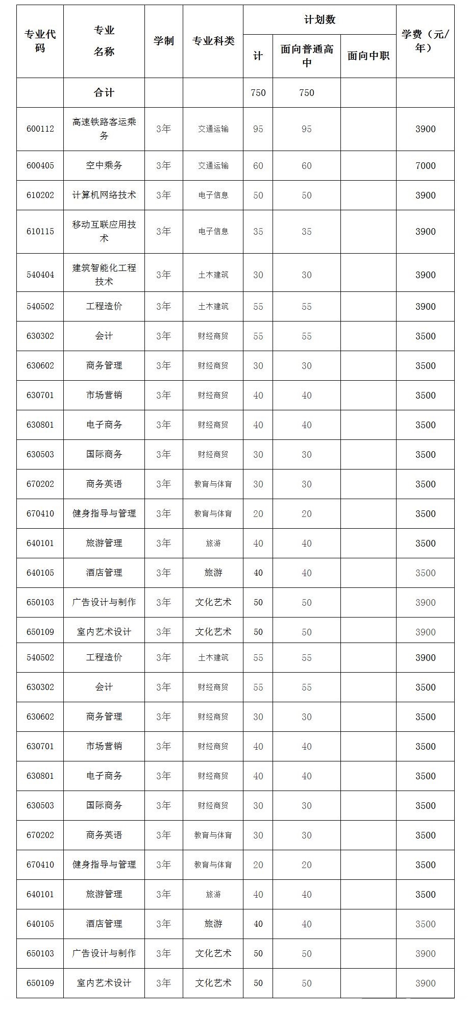 2017年分类考试招生计划