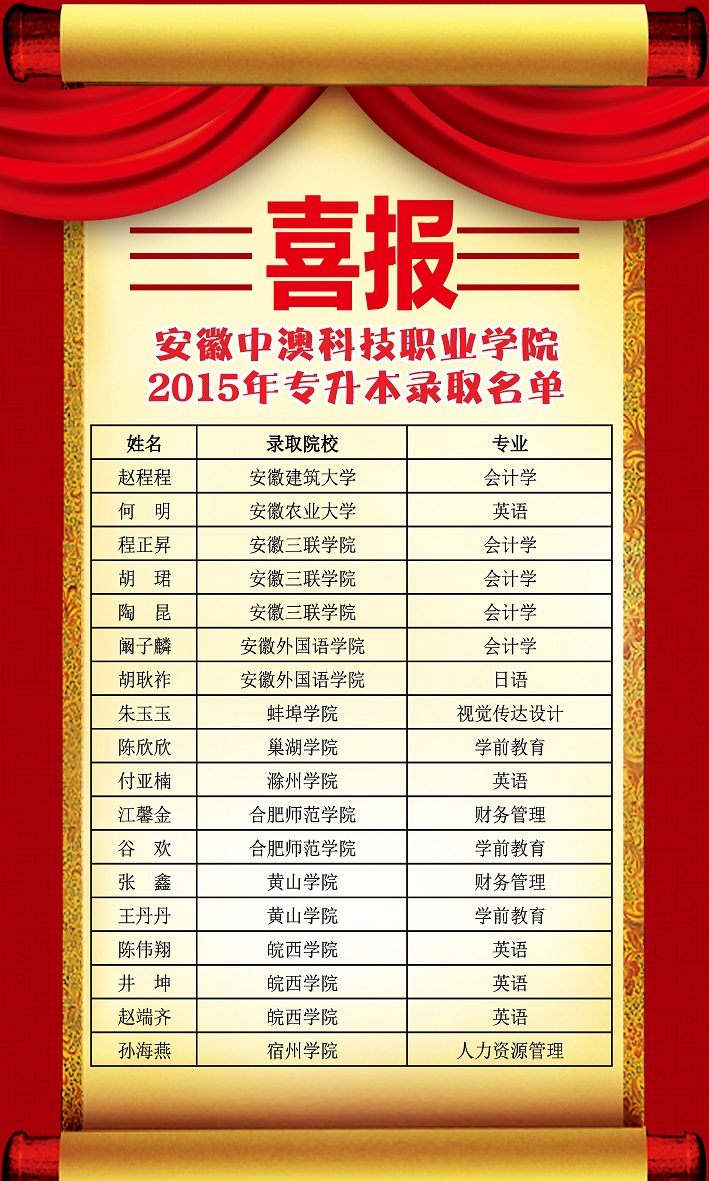 【录取喜报】2015年专升本录取名单