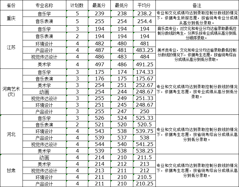 淮南师范学院2023年省外艺术类各专业投录情况