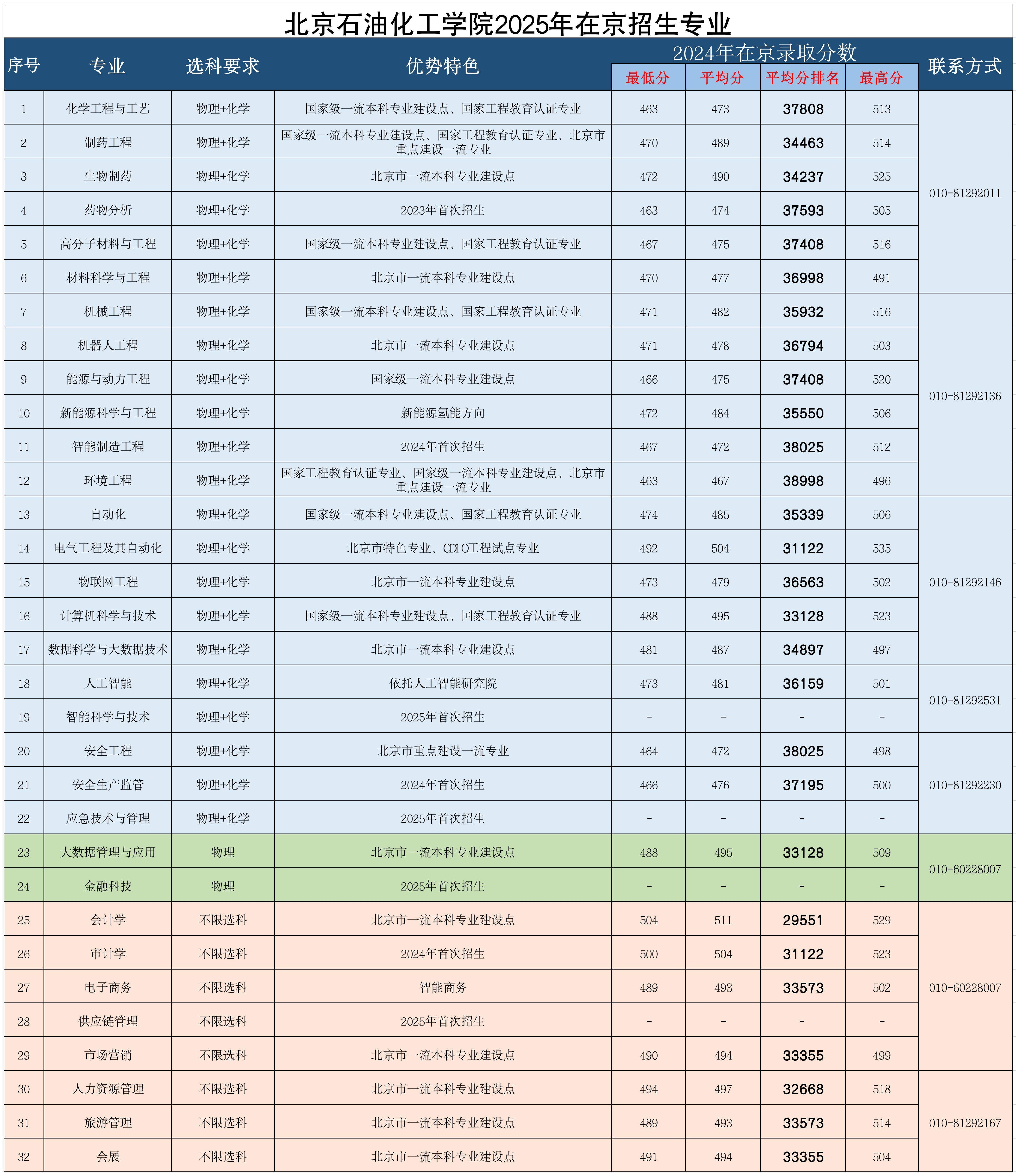 北京石油化工学院2025年招生专业及2024年在京录取分数
