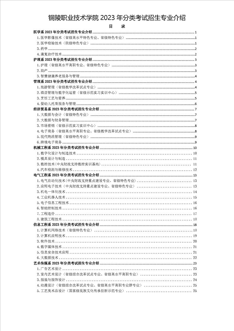 铜陵职业技术学院2023年分类考试招生专业介绍