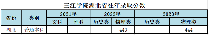 三江学院湖北省往年录取分数和2024年招生计划