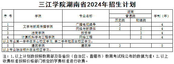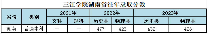 三江学院湖南省往年录取分数和2024年招生计划