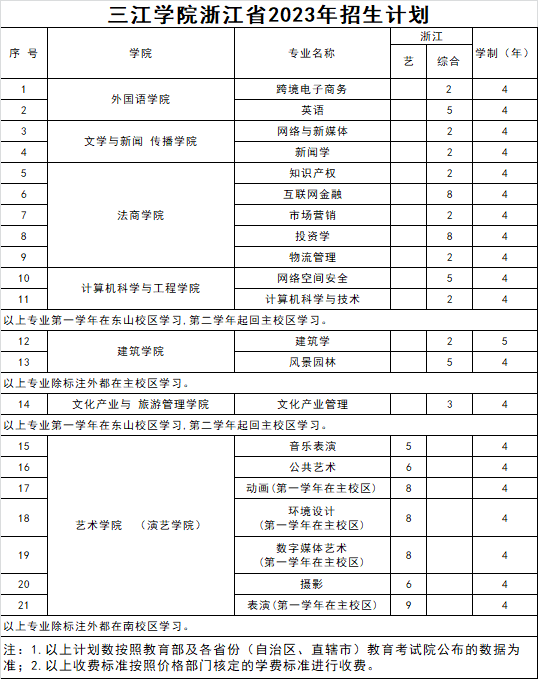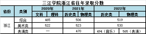 三江学院浙江省往年录取分数和2023年招生计划