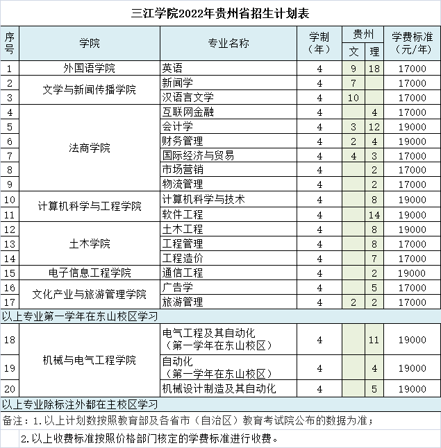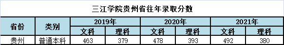 三江学院贵州省往年录取分数和2022年招生计划
