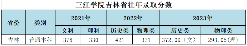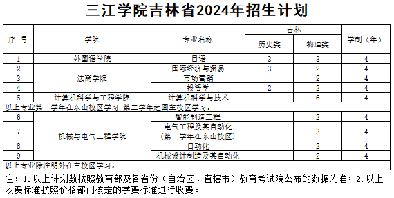 三江学院吉林省往年录取分数和2024年招生计划