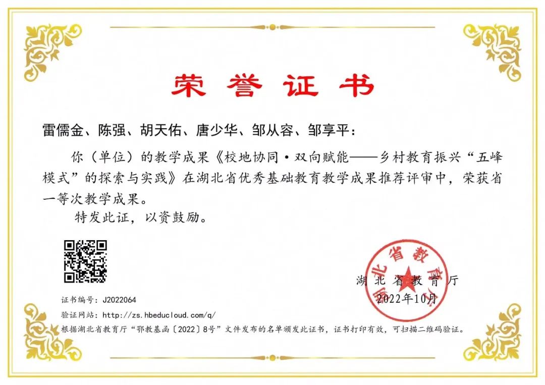 2022年湖北省优秀基础教育教学成果一等奖