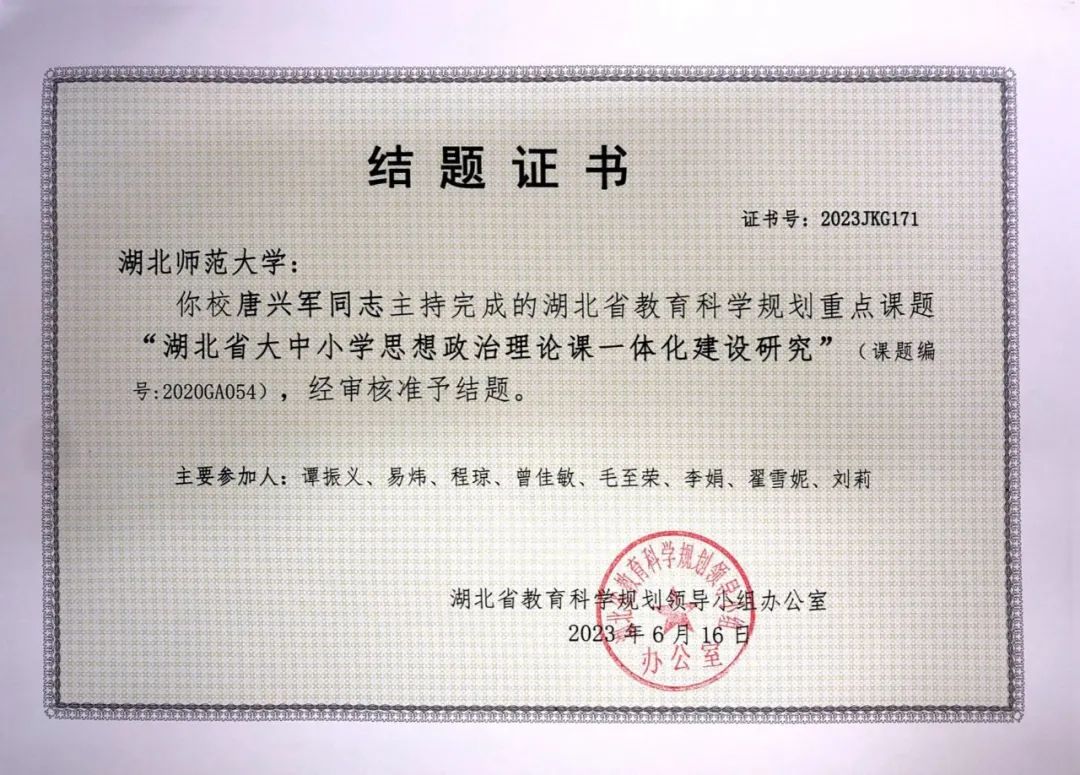 2023年度湖北省教育科学规划重点课题大中小学思政课