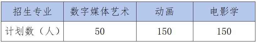 学校2025年艺术类招生专业为数字媒体艺术、动画及电影学,学制均为四年。其中,数字媒体艺术、动画两个专业,采用艺术类省级统考成绩和高考文化课成绩录取;电影学专业直接采用高考文化课成绩(含政策性加分)录取。