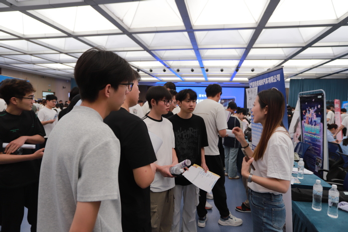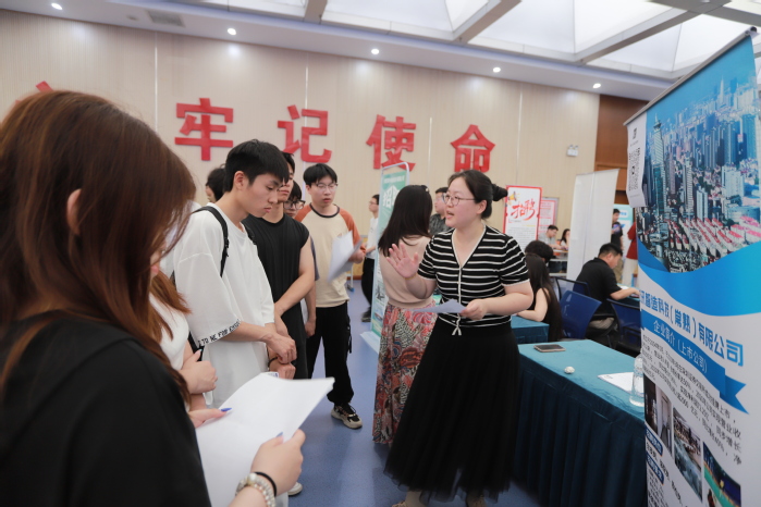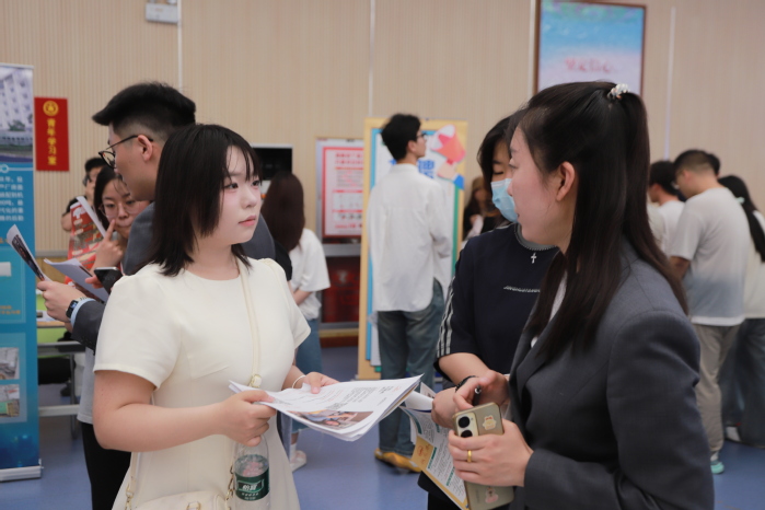 招聘现场,用人单位向同学们展示企业优势,积极宣传推介。应聘学生认真阅读招聘简章,投递简历,主动与招聘人员互动,了解企业情况与岗位要求,表现出良好的精神风貌和求职热情。