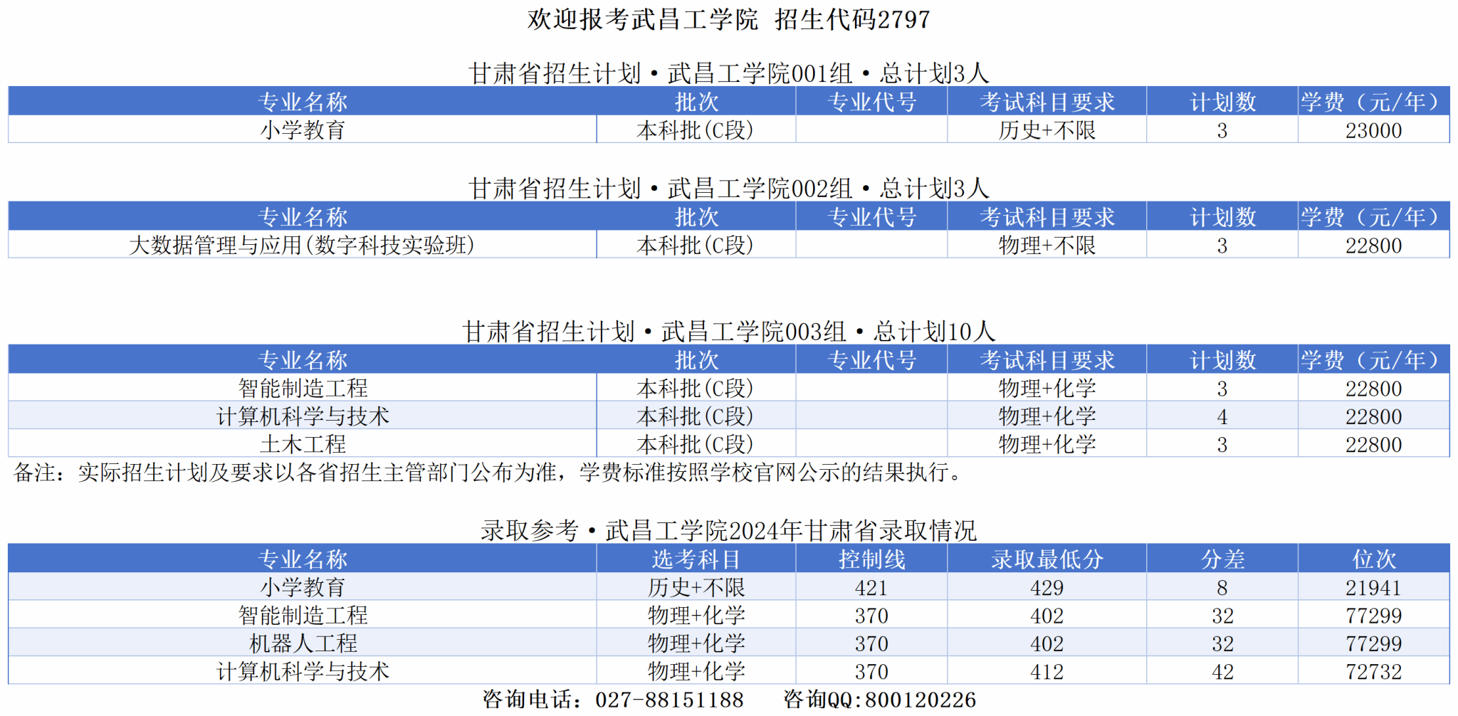 武昌工学院2025年招生计划·甘肃省