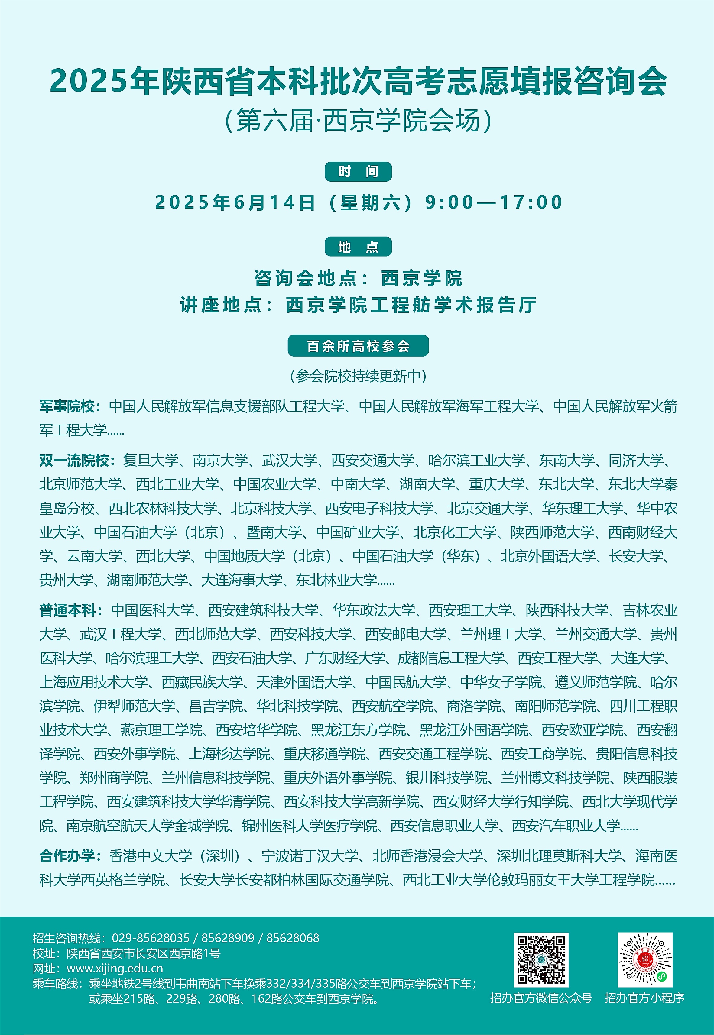 6月14日丨2025年本科批次高考志愿填报咨询会,百余所高校在西京学院等你!