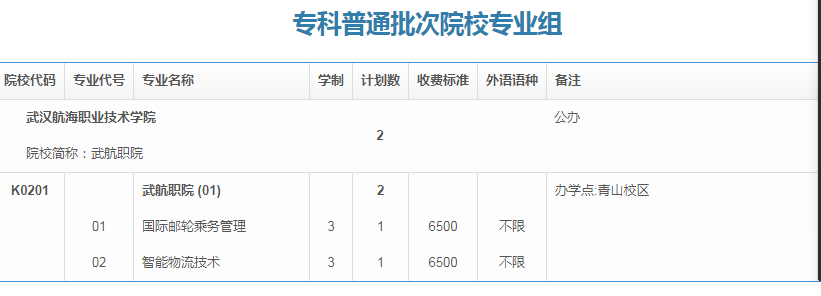 我校在上海分两个批次招生。航海类专业为提前批次,其他专业为专科普通批次。