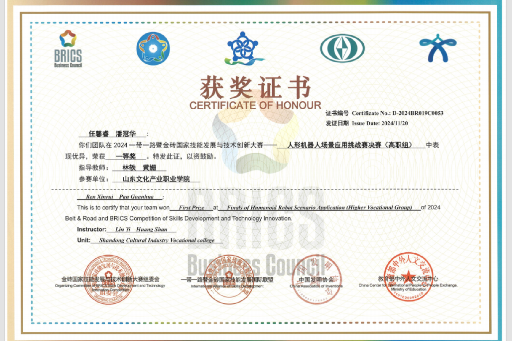 2024 年山东省“技能兴鲁”职业技能大赛斩获双一等奖