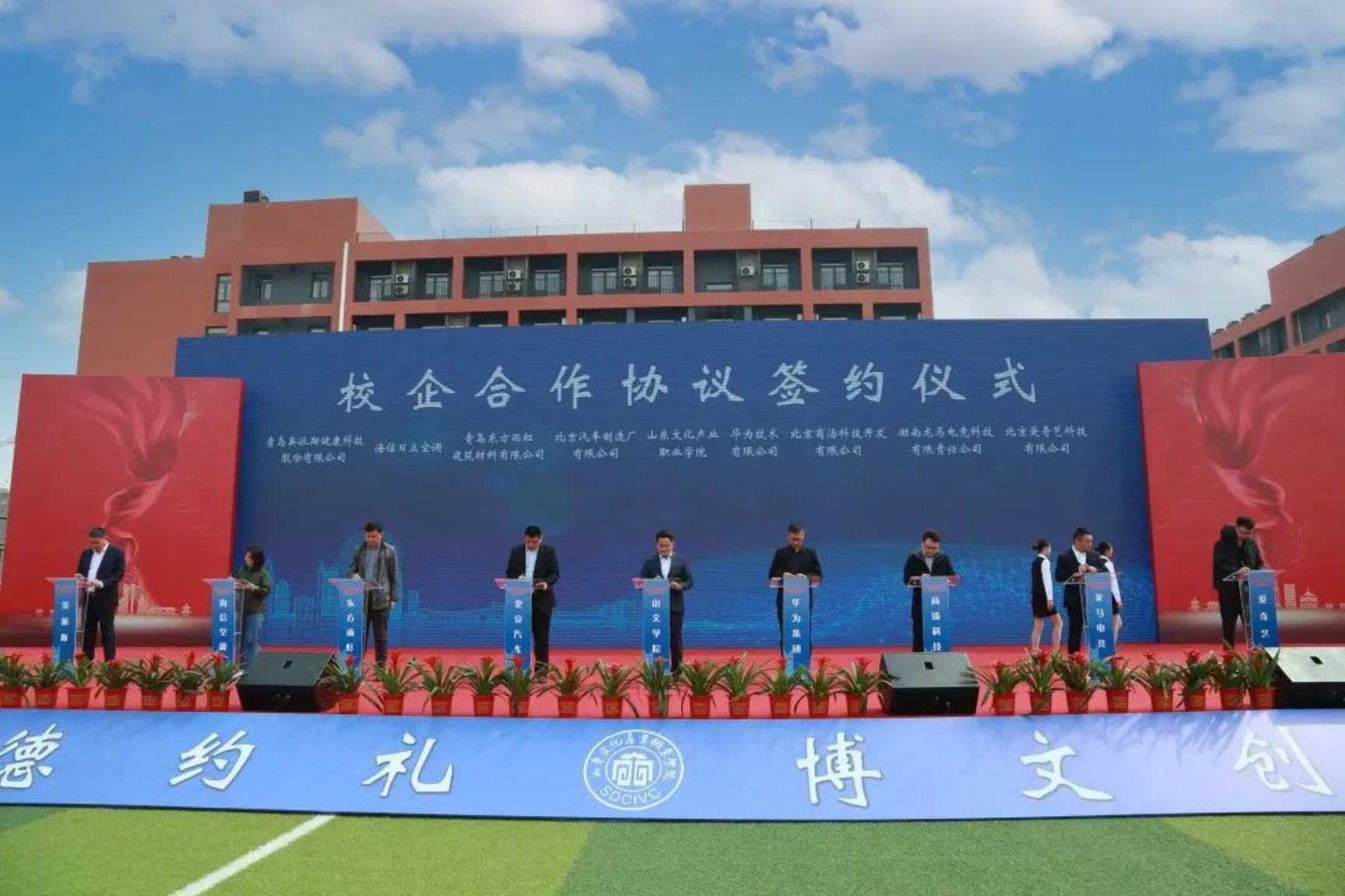 学校不断持续深化产教融合、校企合作,主动对接青岛产业升级发展需求,整合社会优质资源合作办学,不断深化创新改革,夯实“1234567”人才培养的“山文模式”,一批批特色鲜明、优势突出、产学研用一体化的合作项目落地实施,形成了“校中厂”“厂中校”融合共赢、合作发展的大好局面,在服务区域经济社会发展上走出新路、树出品牌、创出特色,同时学校积极搭建多元实践平台,成功承办多场省级、国家级权威赛事,形成“以赛促学、以赛促教、赛教融合”的特色育人模式,为未来职业发展奠定坚实基础。