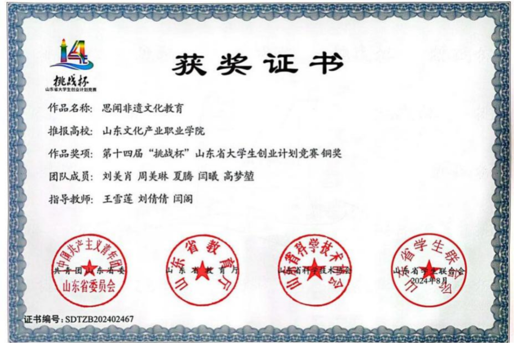 荣获第十四届“挑战杯”中国大学生创业计划选拔赛决赛铜奖