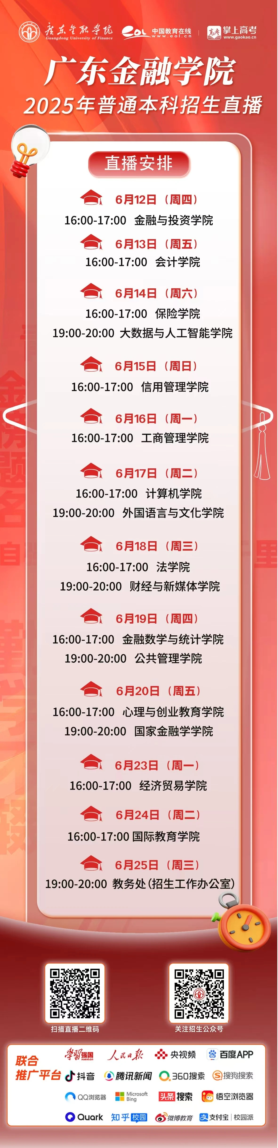 广东金融学院2025年普通本科招生宣传线上直播安排表