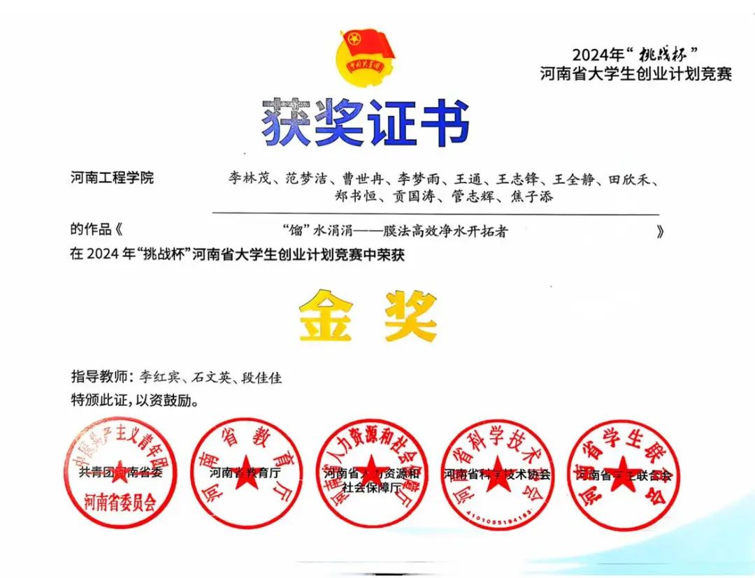 “挑战杯”河南省大学生创业计划竞赛金奖