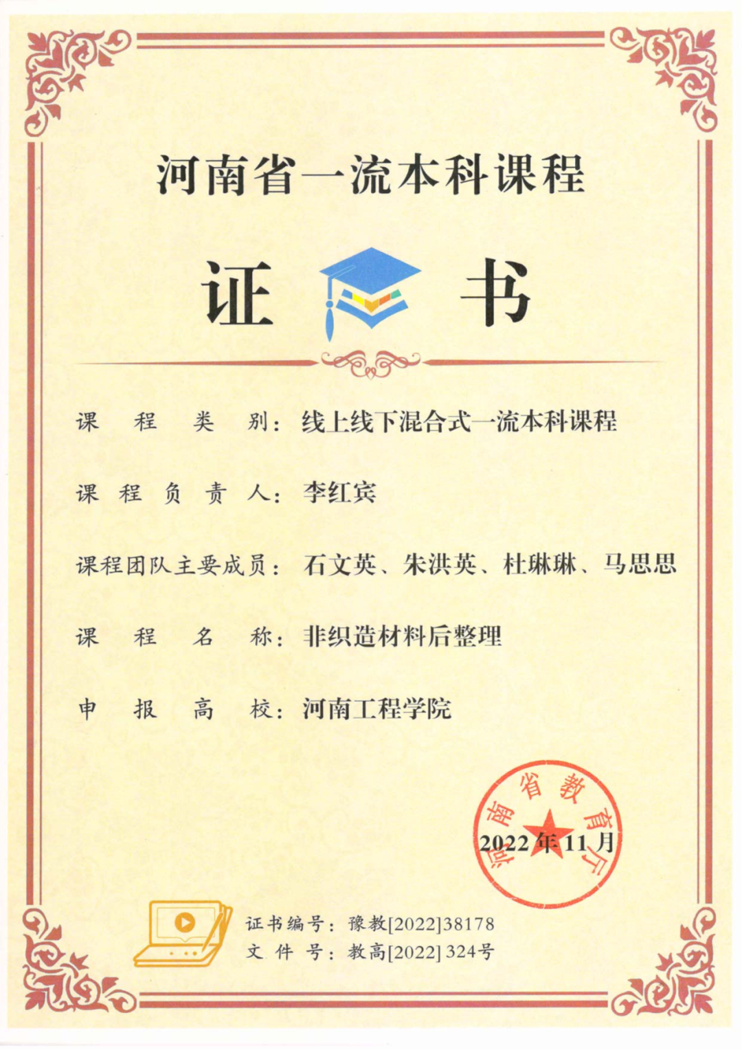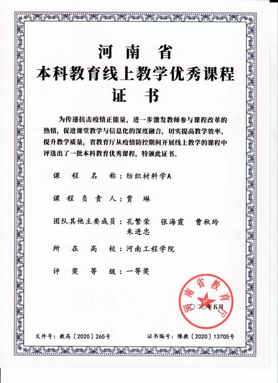 一流课程及教学成果奖