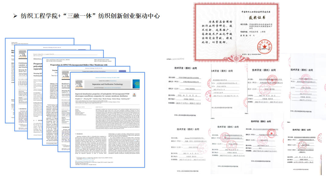 毕业去向:河南逸祥卫生科技有限公司(德佑)研发部研发工程师,在职期间参与撰稿发布两篇核心期刊论文、已授权专利实用新型5篇、已受理发明专利5篇、参与的研发项目获得2024年度河南省科学技术进步奖、2024年度中国纺织工业联合会科学技术奖。