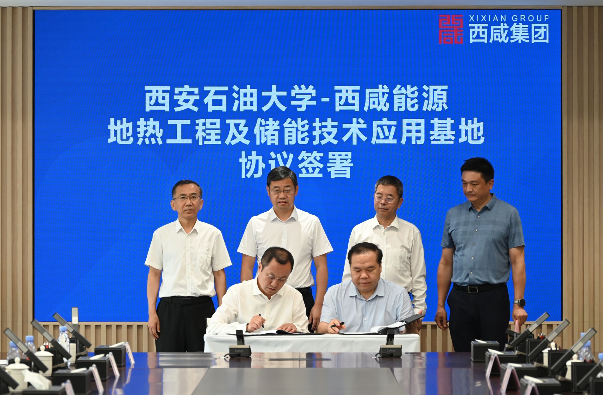 会上,张荣军和彭小峰分别代表校企双方签署了共建西安石油大学-西咸能源地热及储能工程技术应用基地合作协议书。