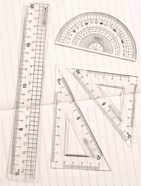 2. 仔细检查《准考证》《身份证》和2B铅笔、0.5毫米黑色墨水签字笔、直尺、圆规、三角板、无封套橡皮等必需的考试用品是否准备妥当,将两证和考试用品装入透明的文件袋。需要特别提醒的是,现在市面上有的直尺、三角板上带有公式、方根、对数、三角函数、曲线等,这样的文具是不能够带入考场使用的,请大家务必注意,只能使用简单的带有长度刻度或角度刻度的直尺、三角板(如下图所示)。