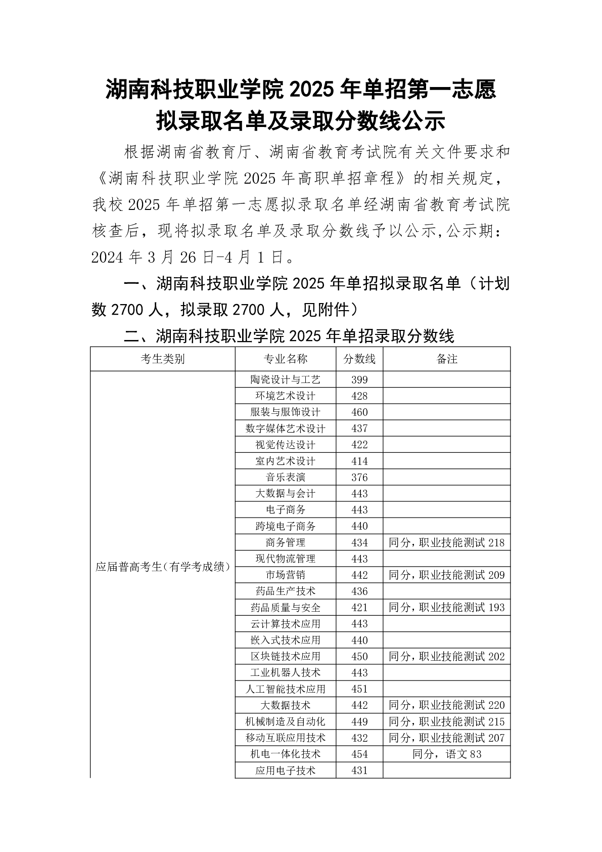 附件2:湖南科技职业学院2025年单招一志愿拟录取名单.pdf