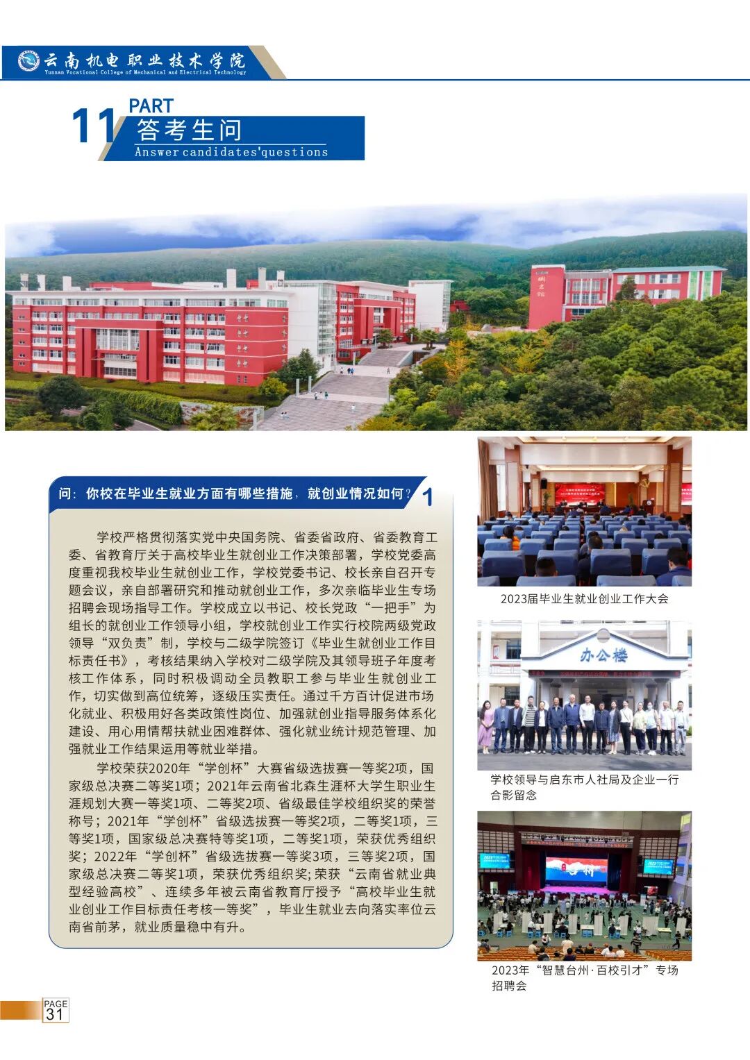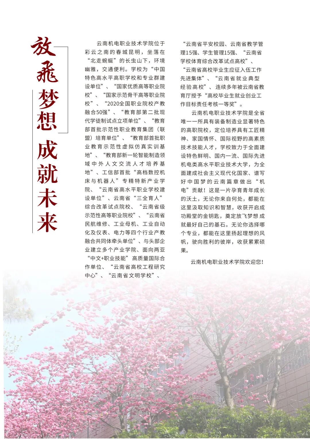云南机电职业技术学院是从全国1400余所专科院校中遴选出的197所国家双高计划学校(专科院校中的“双一流”学校),立足机电,服务云南,面向全国,辐射南亚东南亚,办学特色鲜明,服务制造强国建设,社会声誉好,就业率高,欢迎你报考!