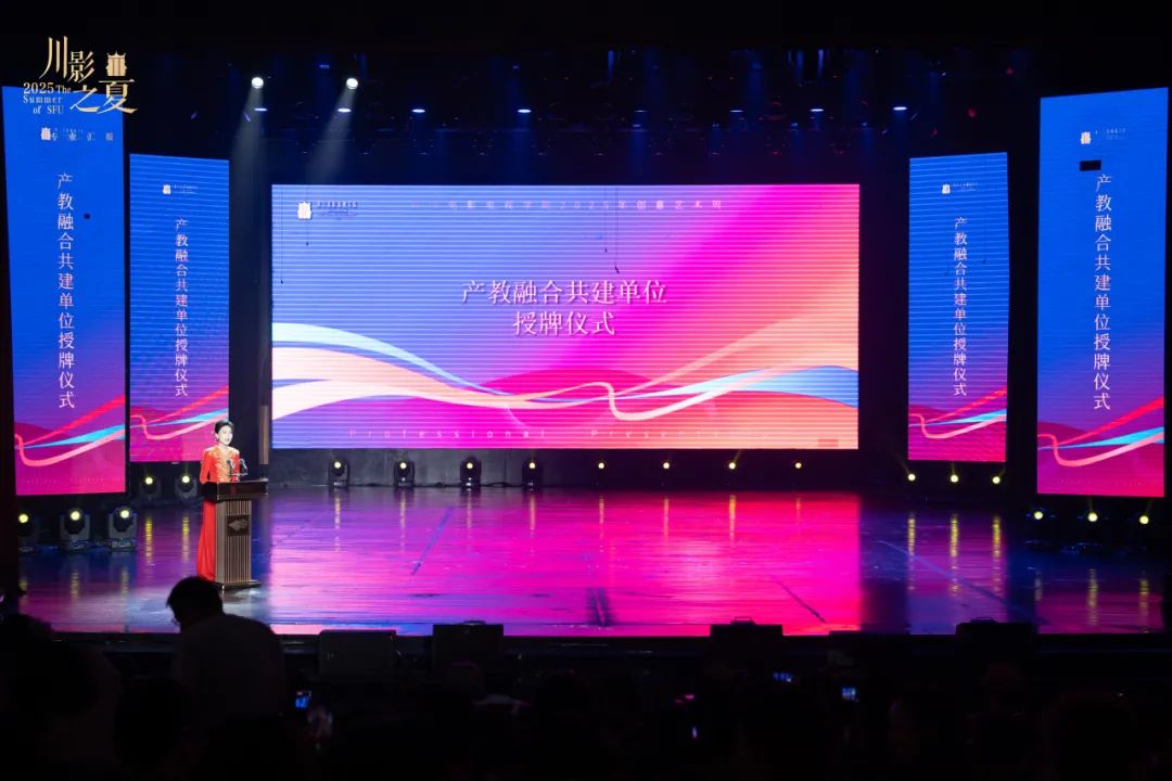 “川影之夏”专业汇报演出前,产教融合共建单位授牌仪式举行,川影与成都市文艺两新联合会等14家单位进行集中授牌,川影产教融合“朋友圈”再扩容。
