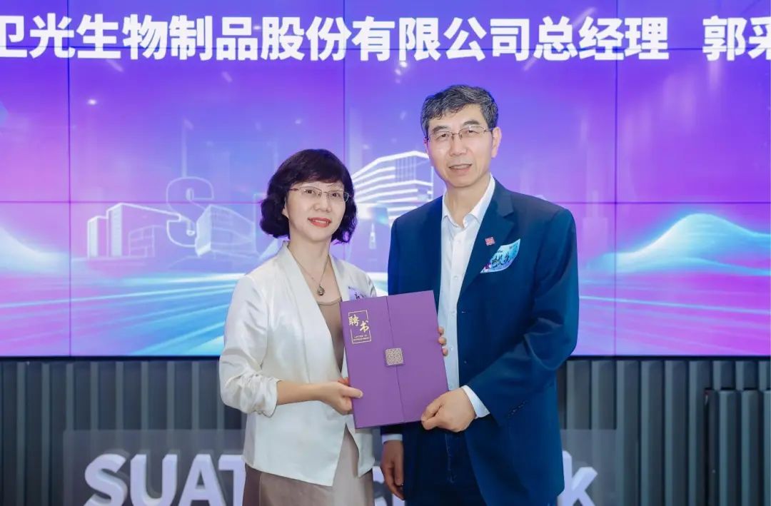 活动现场,深圳市卫光生物制品股份有限公司总经理郭采平受聘为深圳理工大学的“产业导师”,未来将开放企业实验室,为学生提供实习、参观等实践机会,推动“课堂知识”与“产业实践”无缝衔接。郭采平还作了题为《中国生物医药发展PEST分析》的分享,以政策、经济、技术等维度拆解行业趋势,为学子构建“产业思维坐标系”。