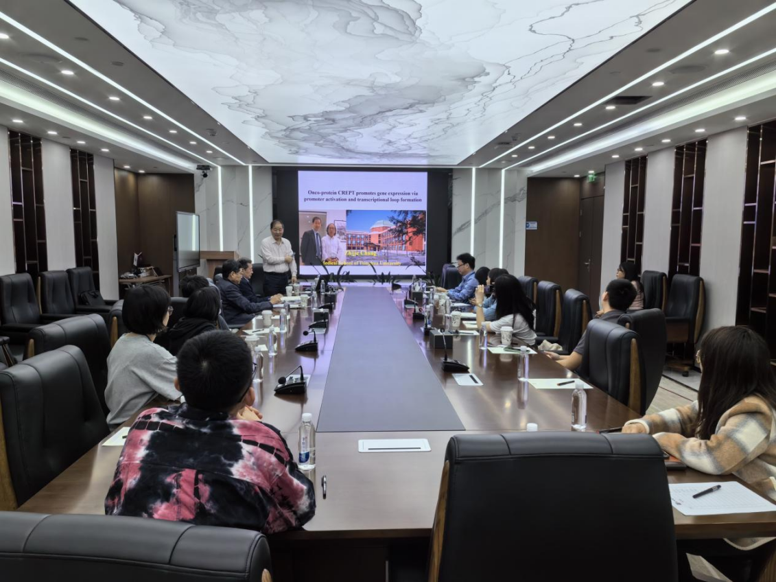 常智杰教授作了题为Onco-protein CREPT promotes gene expression via promoter activation and transcriptional loop formation的报告,讲述了他实验室克隆的一种新基因CREPT的功能。常智杰教授的实验室提出CREPT通过增强RNAPll负载或循环来促进癌基因的转录。常智杰教授发现肿瘤细胞分泌的外泌体能够诱导CREPT表达,提出靶向CREPT可能是未来抗癌治疗的一种策略。报告结束后,与会师生与常智杰教授进行了热烈讨论。