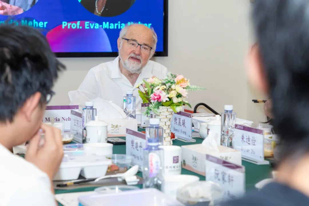“厄温・内尔教授与团队一起发明了膜片钳技术,也是我们现在还在常用的技术,对生物领域的研究作出了很大的贡献。他还谈到,科研本身就是他的课余爱好——在业余时间里,他会持续思考尚未解决的科学问题,探索未知的奥秘。对他们而言,科研早已成为生活不可分割的一部分,更是毕生热爱的追求。这种纯粹的科学家精神深深触动了我。”