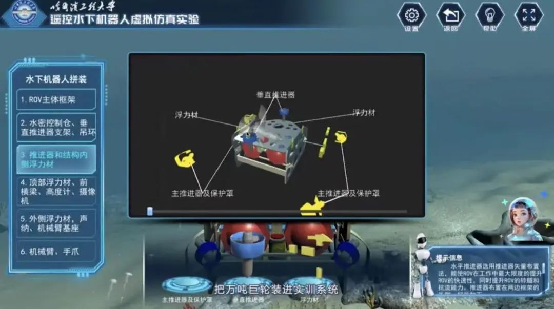 “学生能够深入学习水下机器人的运动控制与建模方法,沉浸式掌握其操作及作业流程,即使在1500米海深,水下机器人作业情况也能精准模拟、清晰可见。”研究所成员昝英飞教授说。