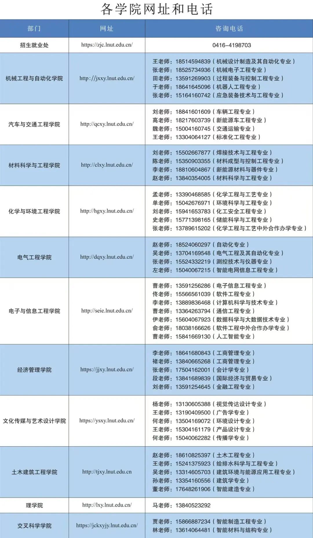 01 各学院咨询网址及电话