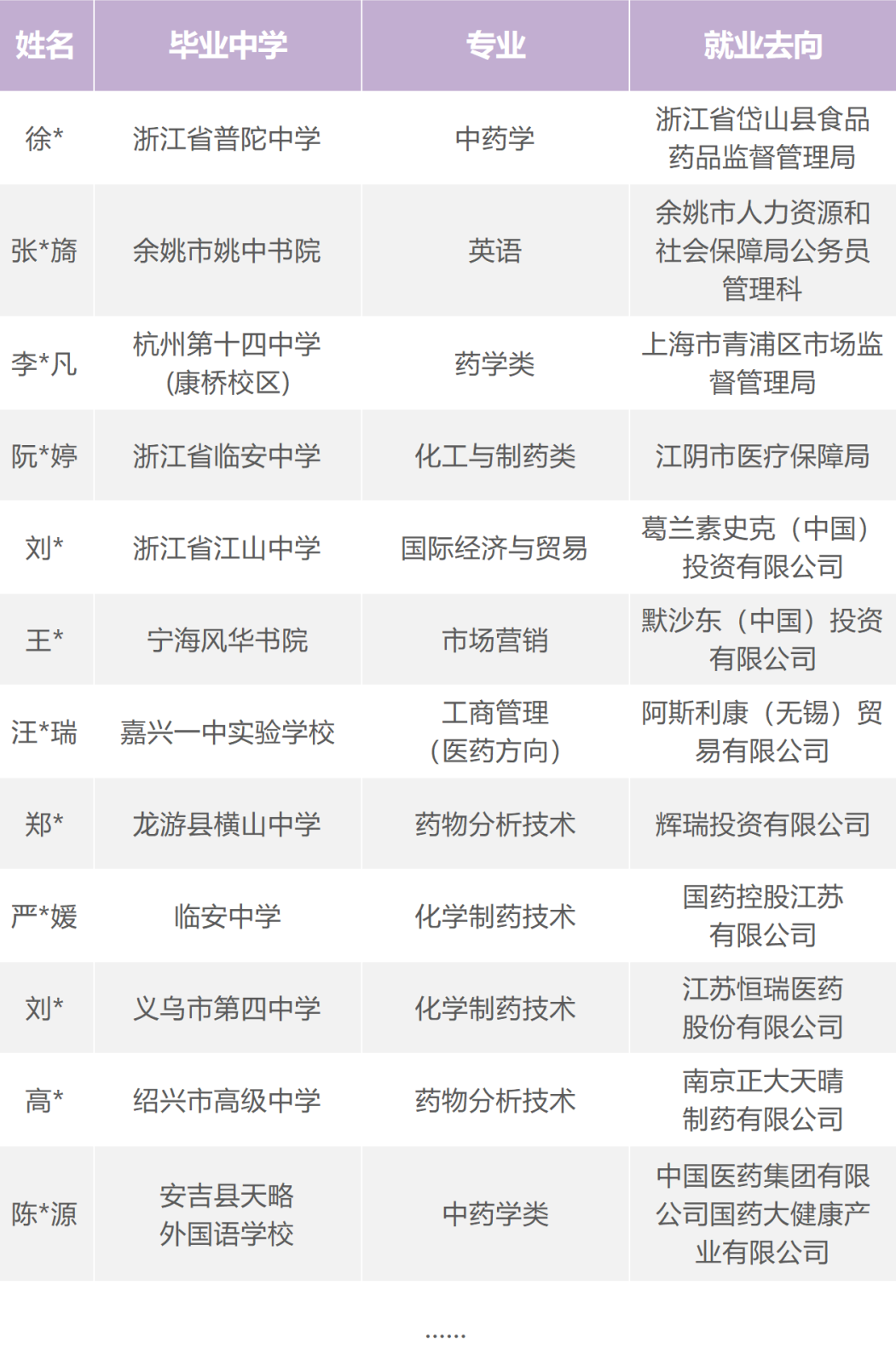部分毕业生就业情况