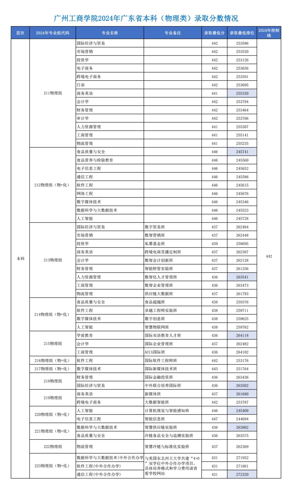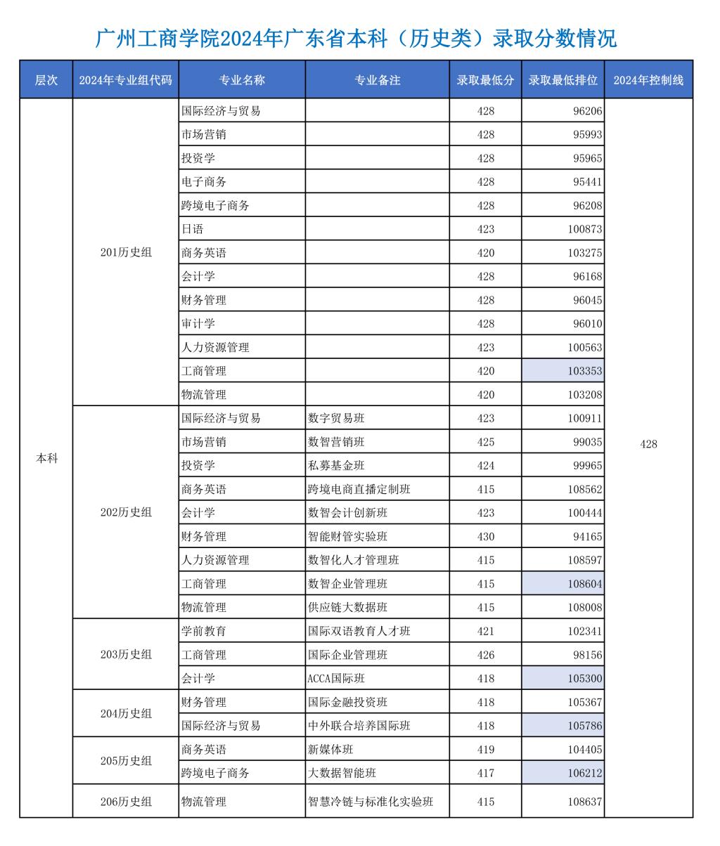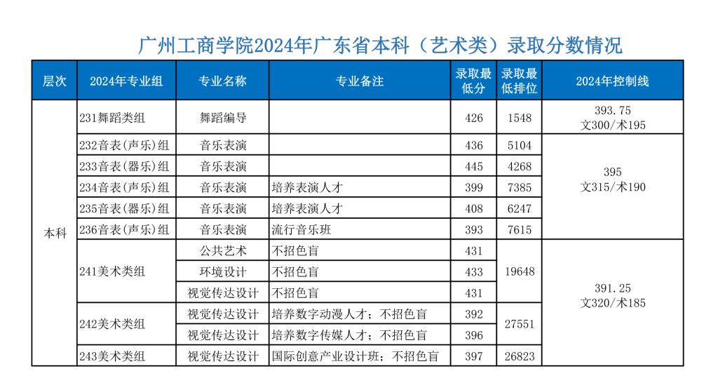 广州工商学院2024年广东本科批录取分数线