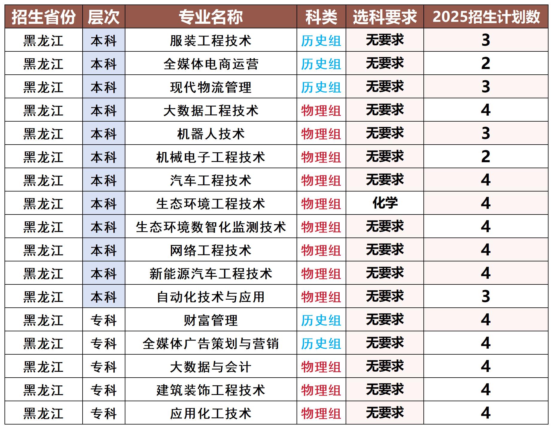 河北科技工程职业技术大学2025年黑龙江省招生计划