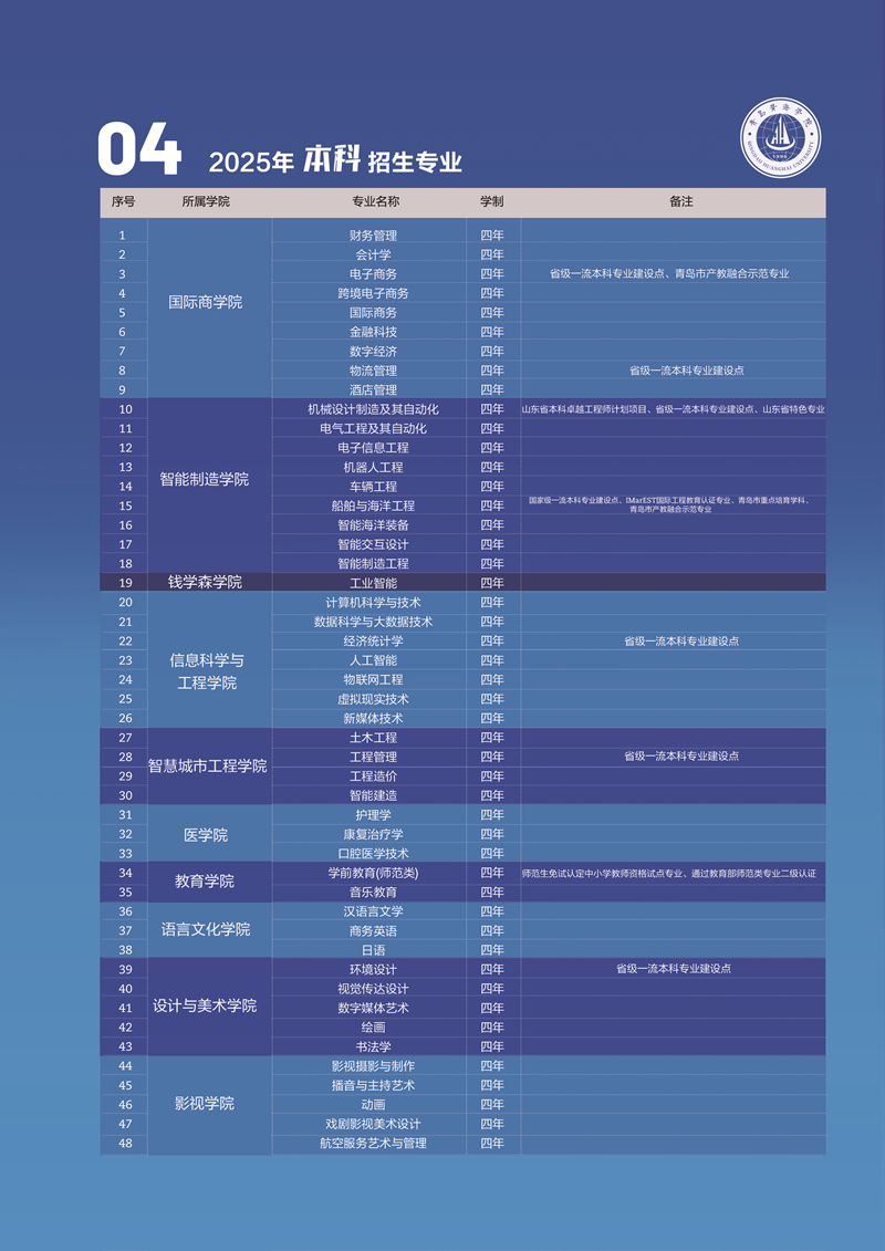 青岛黄海学院2025年招生简章