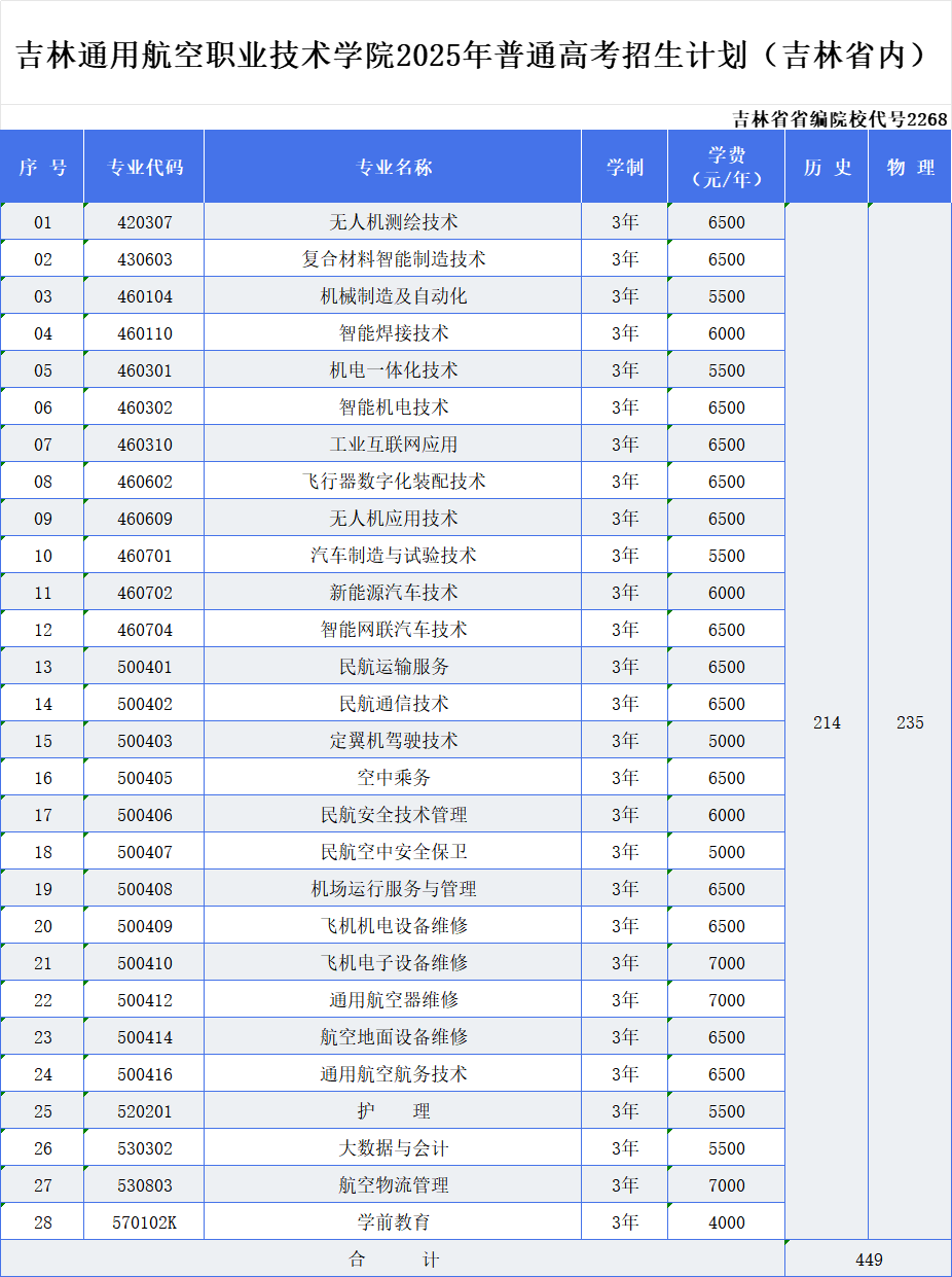 吉林通用航空职业技术学院2025年高考招生计划(吉林省内)