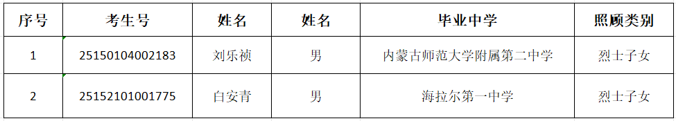 2025年普通高等学校招生考试加分考生名单公示(烈士子女)