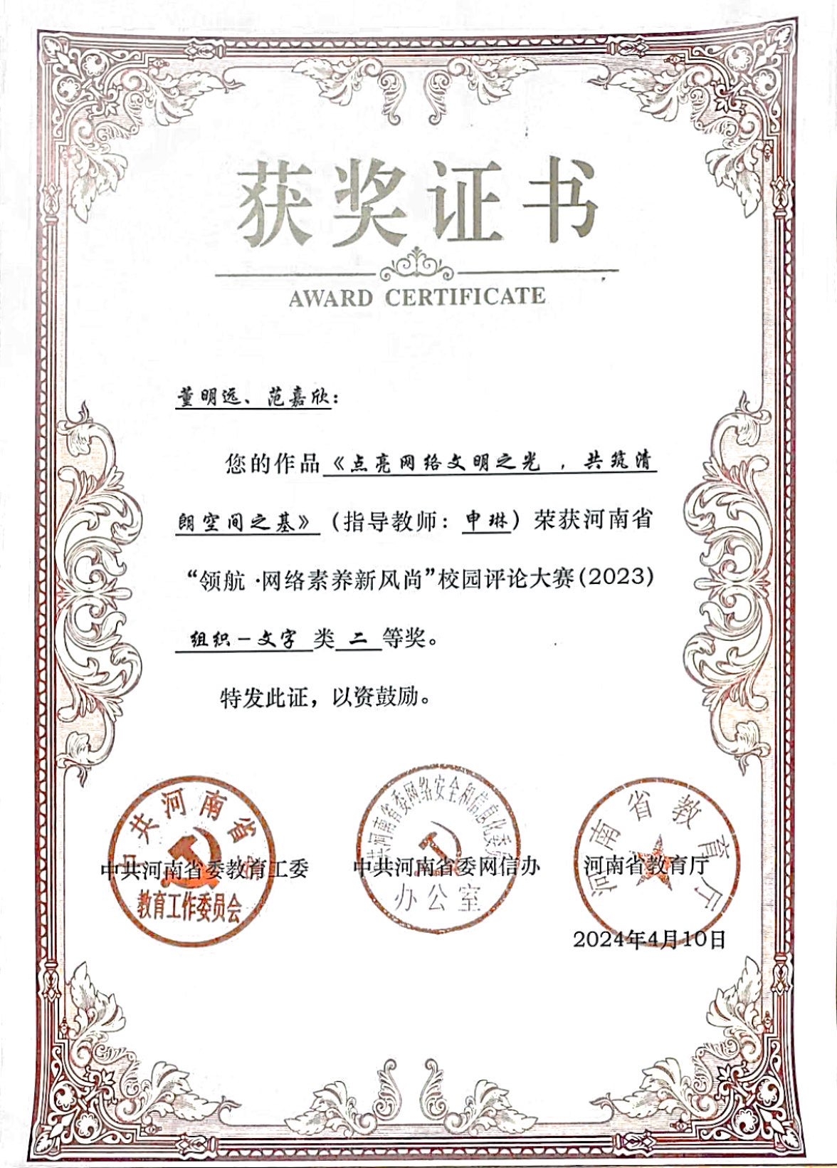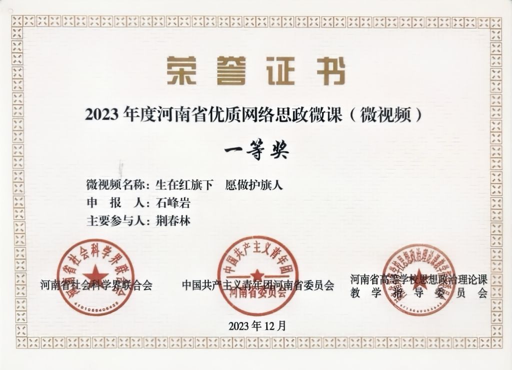 文法学院学生获2023年度河南省优质网络思政微课一等奖