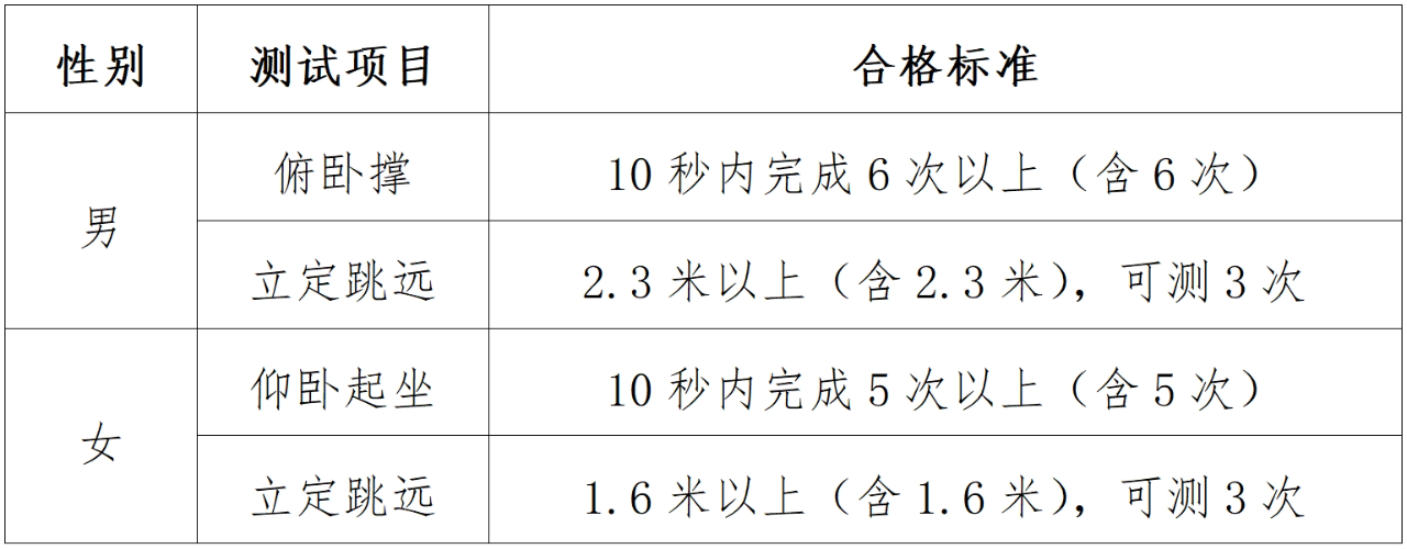 四、面试体检体能测试项目及合格标准