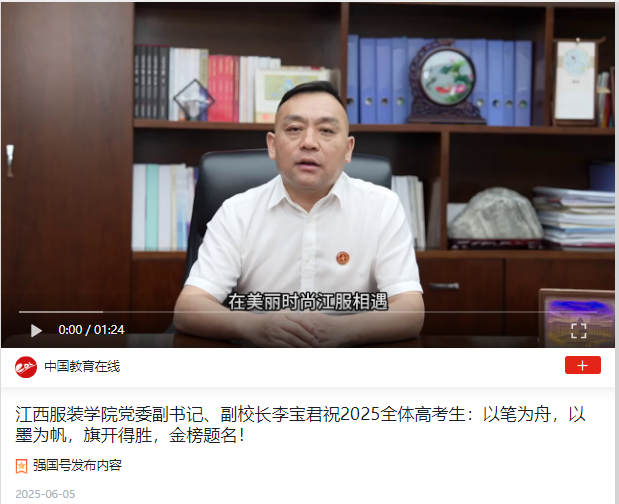 光阴荏苒,白驹过隙,高考的钟声即将敲响。江西服装学院党委副书记、副校长李宝君祝2025全体高考生:以笔为舟,以墨为帆,旗开得胜,金榜题名!