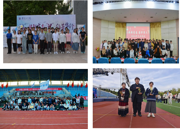 学院积极组织学生参加各类文体活动,在活动中培养学生团结协作精神,不断提高学生个人综合素质。近年来,组织元旦晚会、毕业生晚会、小马扎音乐节、阅读分享会、学院运动会等活动,营造学院良好的学习生活氛围。数理学子在学校各项活动中更是屡创佳绩,2024年到2025年,获校第二届民族传统体育运动会团体总分第二名,获校田径运动会运动会团体总分第三名,并有3人次打破校运会记录,获校第一届排舞新生赛团体总分铜奖,获校新生足球赛和篮球赛亚军,校新生排球赛季军等。学院各类活动精彩纷呈,为学生搭建了完善自我、锻炼自我、展示自我的平台,有效促进了学生德智体美劳的全面发展,2024年有3名学生获得校园十佳歌手,1名学生获得淮安市大学生校园十佳歌手大赛十佳歌手,金融数学1222团支部获得年度淮阴工学院“五四红旗团支部”称号。