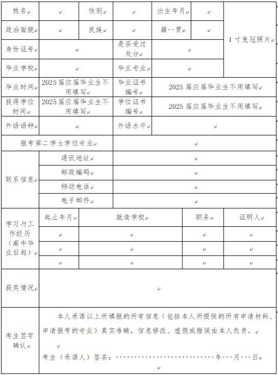- 附件【沈阳工业大学2025年第二学士学位报名登记表.doc】已下载11次