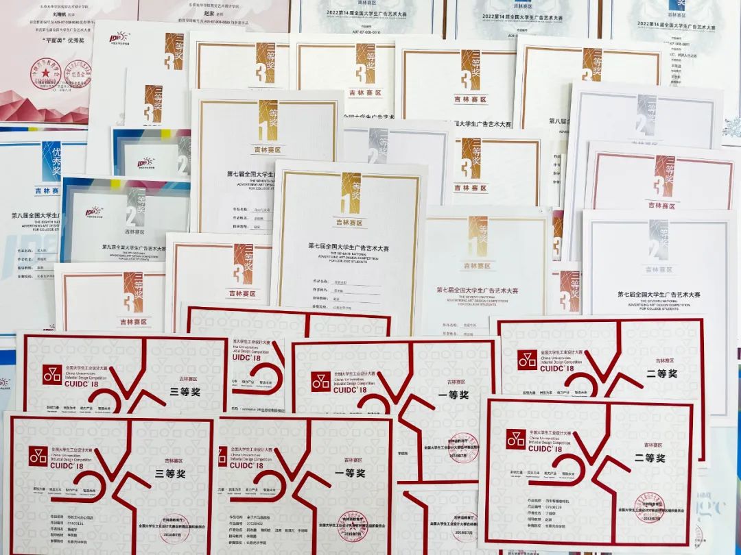 学院积极组织学生参加各类设计类大赛并屡获佳绩,如环境设计专业在中国建筑装饰协会举办的“CBDA装饰设计赛”中荣获金奖、银奖,在“全国三维数字化创新设计大赛”中荣获国家级一等奖,在“中国好创意设计大赛”中荣获国家级二等奖,在米兰设计周中国高校设计学科师生优秀作品展中获吉林赛区二等奖;视觉传达设计专业在“两岸新锐设计竞赛·华灿奖”中荣获国家级二等奖,在“全国大学生广告艺术大赛”中荣获国家级三等奖,学生海报作品入选“第十九届中国长春电影节”宣传海报;产品设计专业在“全国大学生工业设计大赛”中荣获省级一等奖;摄影专业在“第十二届亚洲大学生摄影大赛”中荣获纪实类一等奖;数字媒体艺术专业在“中国虚拟现实大赛”中荣获国家级一等奖。