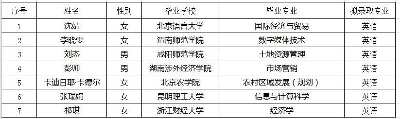 说明:以上拟录取学生名单经教育部录取检查通过后,方为正式录取。如在录检过程中发现拟录取考生提供虚假信息、存在作弊行为或其他不符合录取政策的情况,我校将有权取消其录取资格。