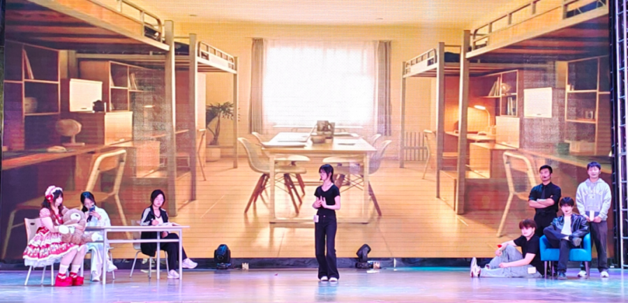 在检测学院凌月莲老师的指导下,杨晨、曹文清等八位同学参与演出的心理微剧《恋与制作人》,该剧传达了爱是包容、责任、担当、牵挂以及双方共同付出的主题。通过宿舍夜聊的场景展开,四位性格鲜明的女生分享了她们对恋爱的看法,而四个“标签化”的男友角色则以戏剧化的方式呈现了恋爱中常见的各种情景。