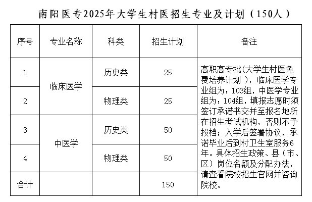 2025年大学生村医招生按照全省普通高考进行报名、考试和填报志愿。